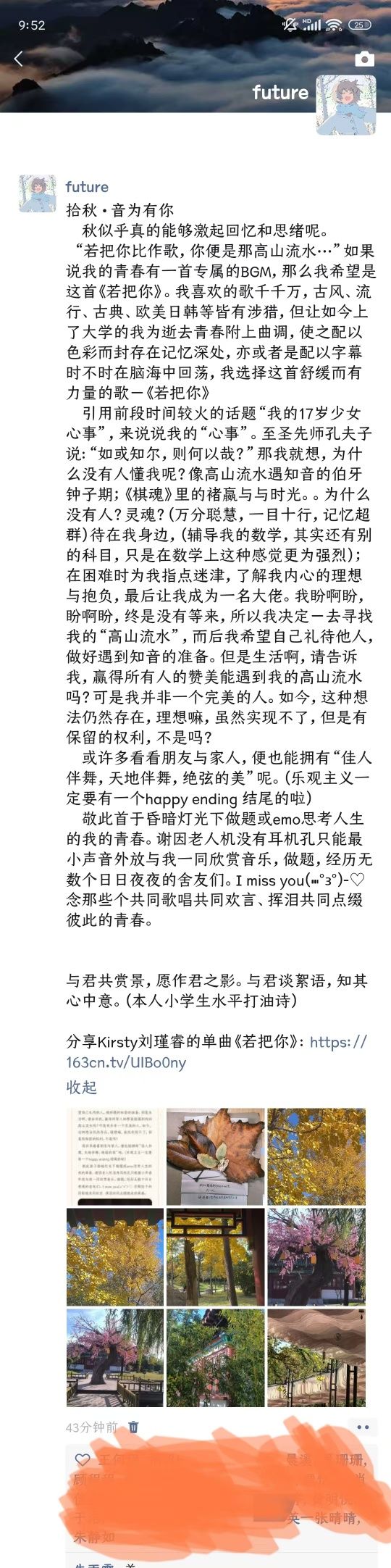 二、成功举办学院特色品牌活动。在学院层面,我们策划并实施了两项特色鲜明、参与度高的品牌活动,将心理健康教育与专业特色、学生兴趣深度融合。“拾秋集·愈见自己”手账制作活动:鼓励学生走出寝室,用画笔和文字记录秋日校园的美好与内心的感悟。同学们在创作中舒缓了压力,实现了与自我的深度对话;“音为有你”——致我的专属bgm活动:我们以“哪首歌,曾拉了你一把?”为主题,同学们踊跃分享自己的“疗愈歌单”及背后的故事,用音乐搭建起一座情感交流的桥梁,营造了倾听与共鸣的温暖氛围。