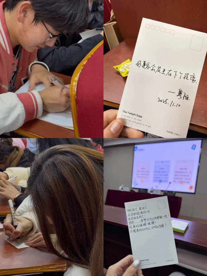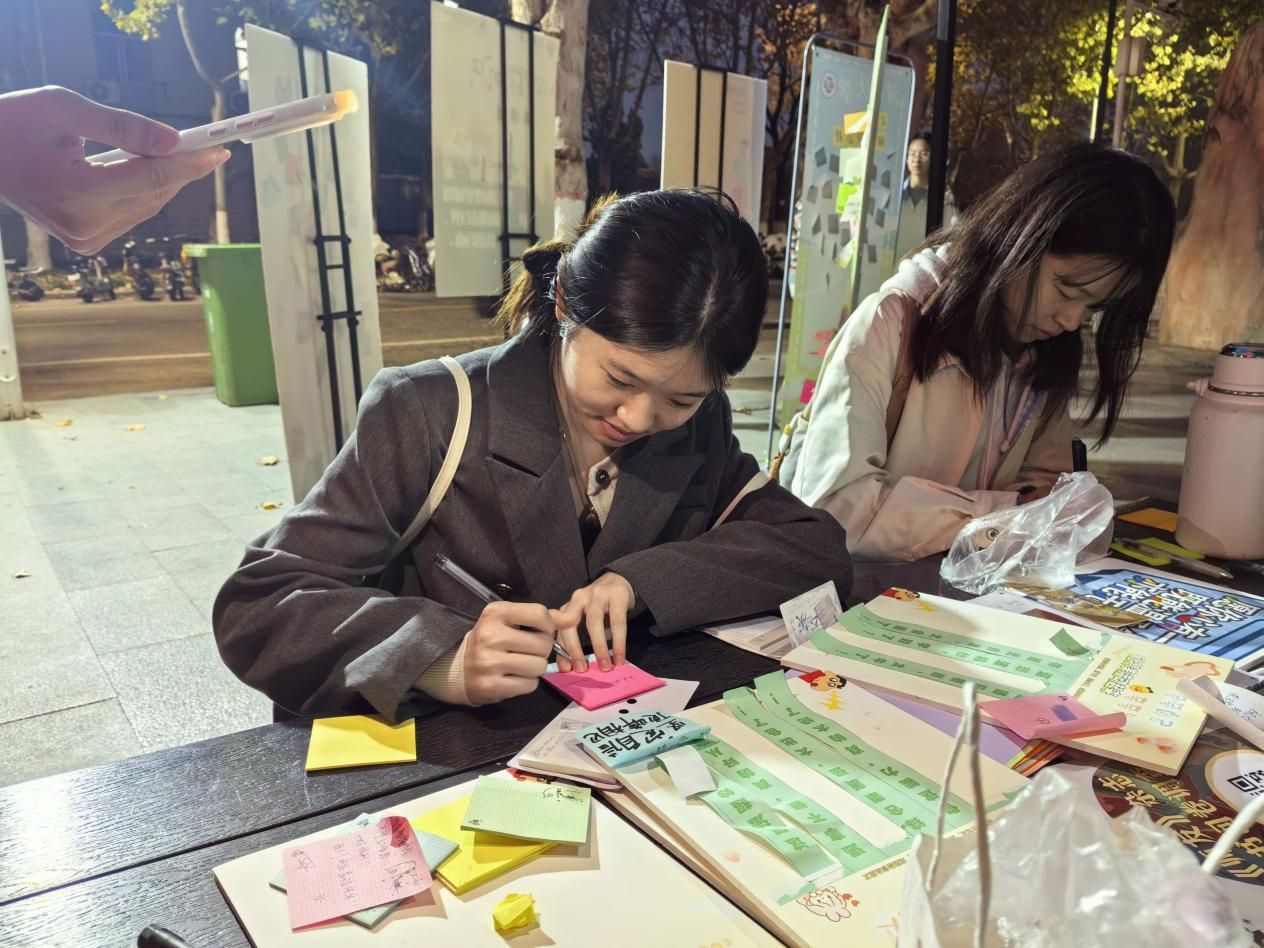 联合文学院师友杂志社开展心灵树洞、情绪墙、故事换花及图书推荐等活动,为学生提供表达与倾听的平台,实现情感的双向温暖传递。