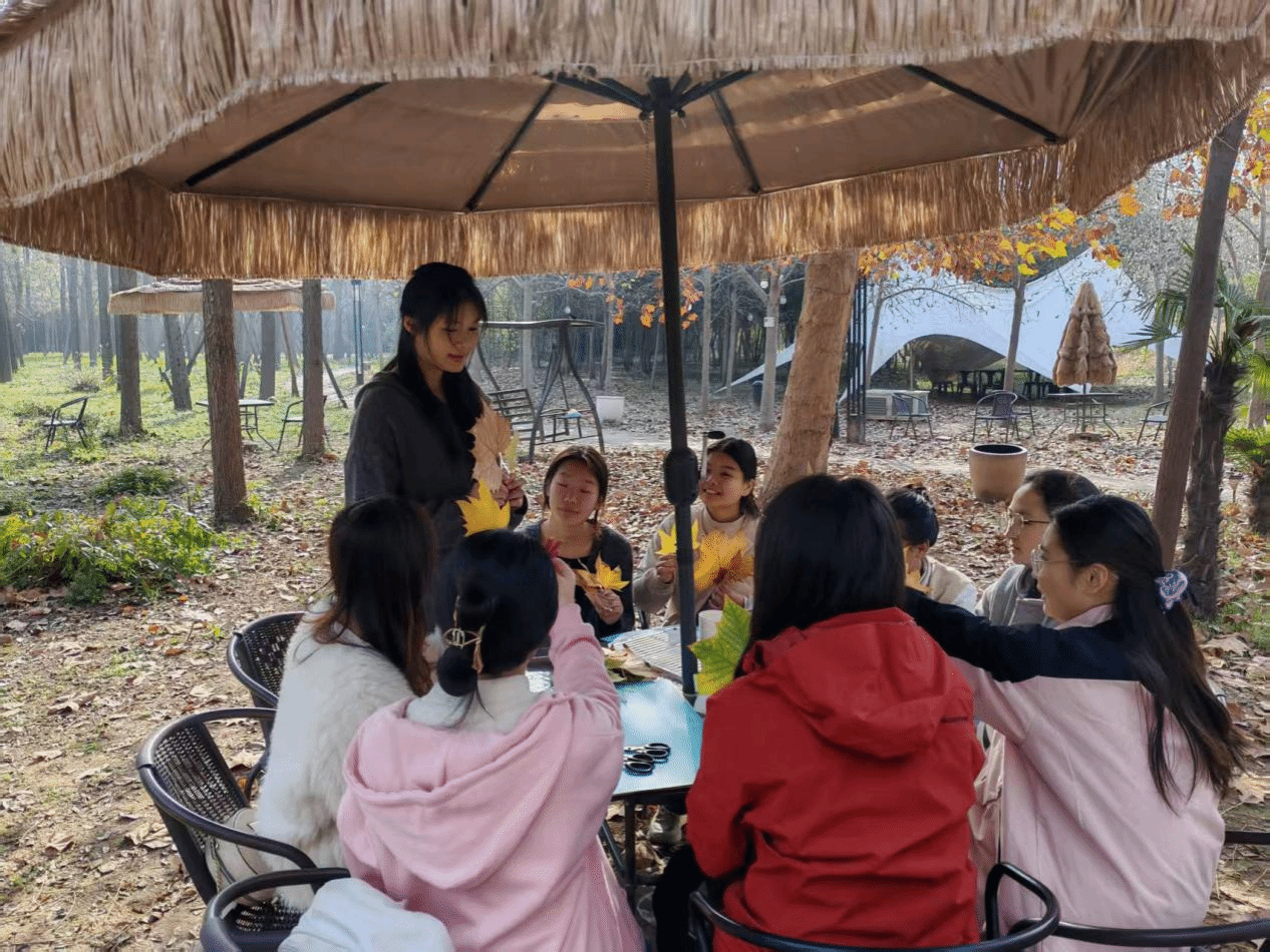 以纸杯、银杏叶等为材料,引导学生通过手工创作舒缓情绪。同学们将校园落叶制成拼画、玩偶等作品,在实践中传递环保理念,涵养平和心境。学生张美洽分享,创作过程让她体会到沉静的重要性,为今后的护理工作积累了宝贵的心态经验。
