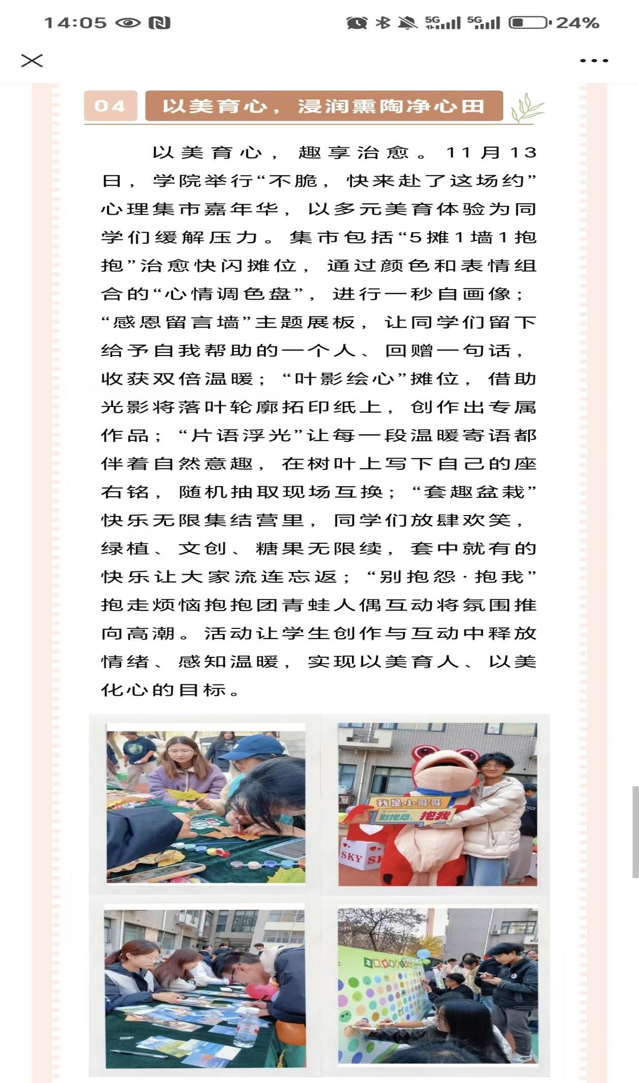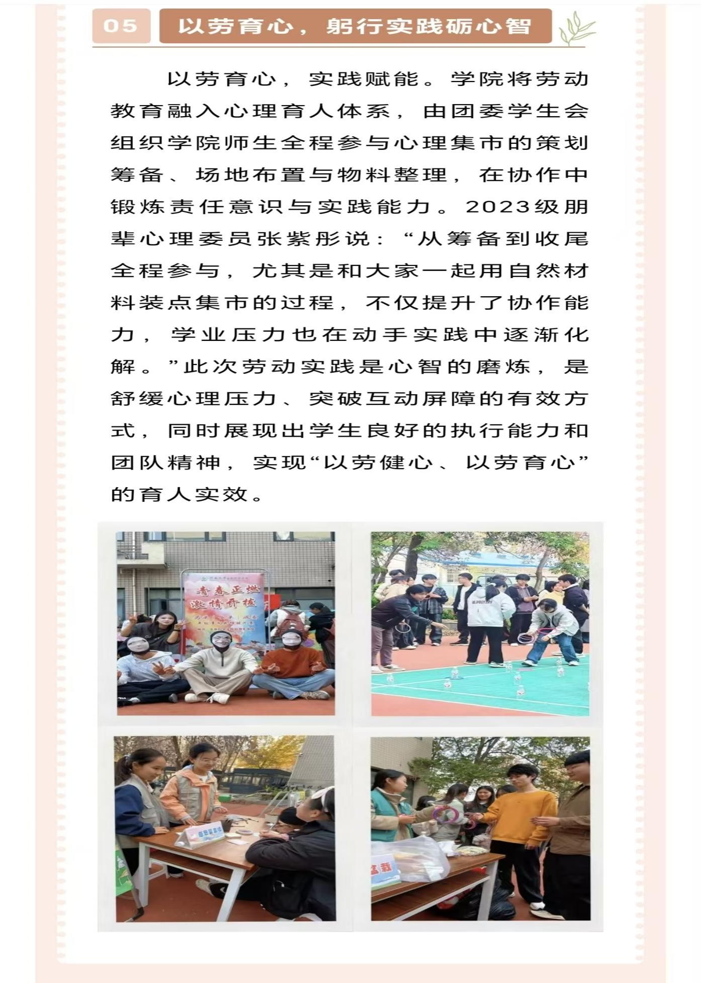千人参与、全程沉浸的系列实践,最终把“五育并举”浓缩成一堂看得见、摸得着、传得开的大型“心育公开课”,也为学院后续深化心理育人提供了可复制、可推广的样板路径。