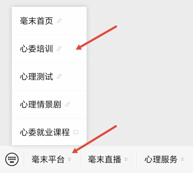 4.信息完善后,回到微信菜单栏页面,点击“毫末平台”,选择“心委培训”。