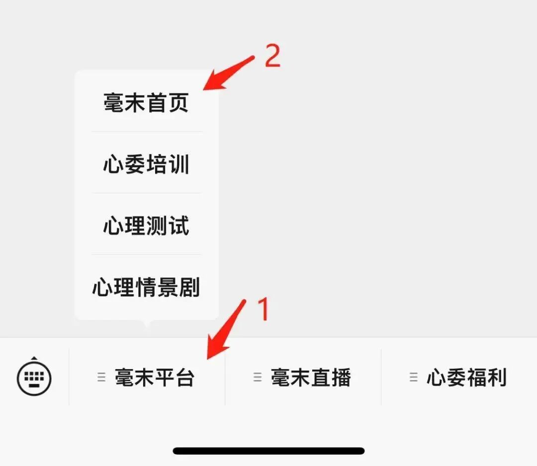 4. 信息完善后,回到微信菜单栏页面,点击“毫末平台”,选择“心委培训”。