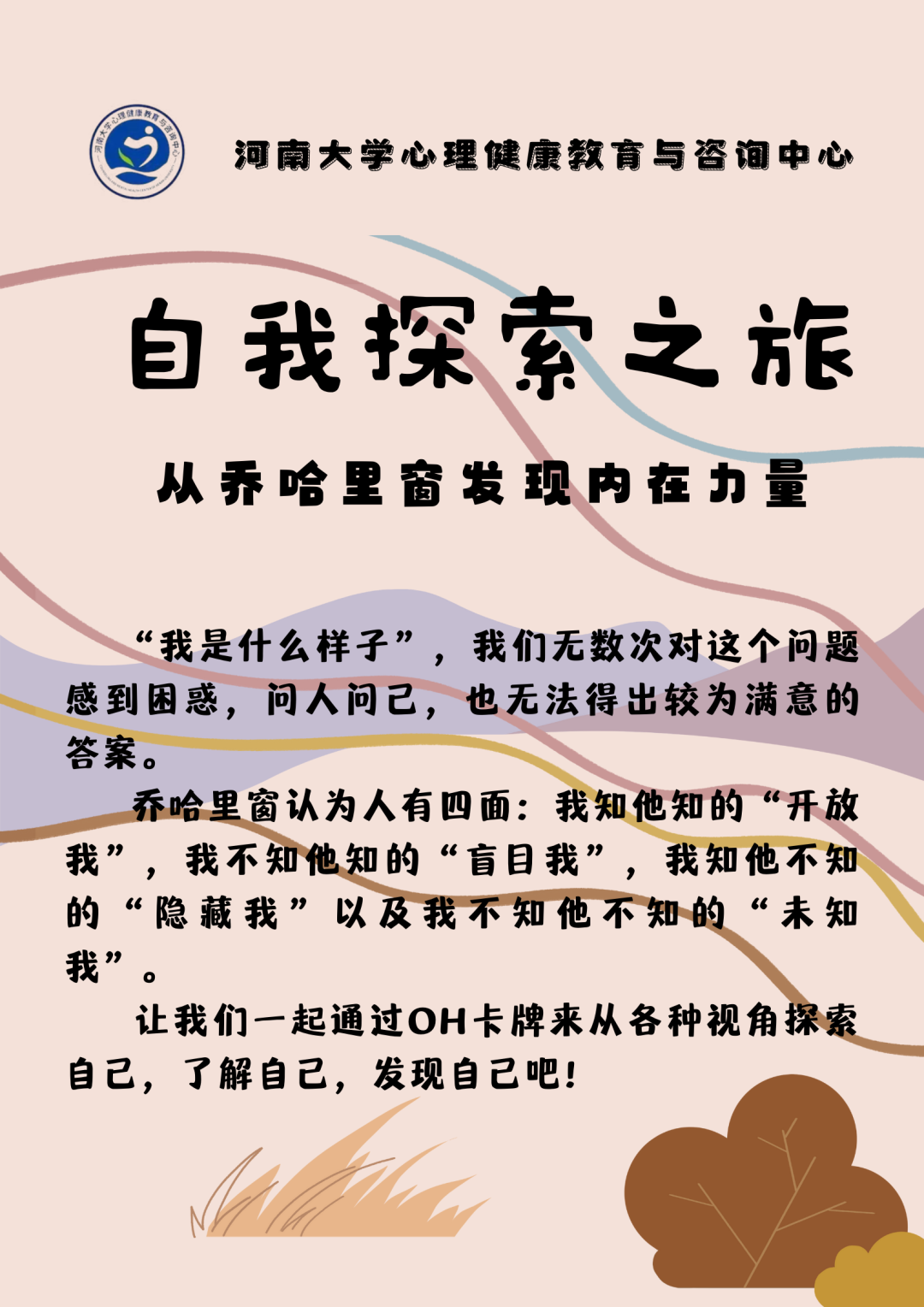 团体工作坊|“自我探索之旅”:从乔哈里窗发现内在力量